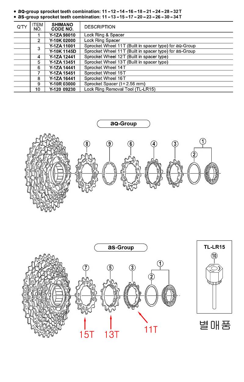 *시마노DEORE XT, CS-M760/M770, 9단 스프라켓 유닛 15T 입니다.