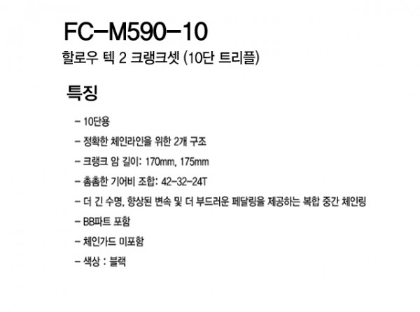 • 기어크랭크(3단, 시마노9/10S, DEORE, FC-M590, 48T, HOLLOWTECH 2)