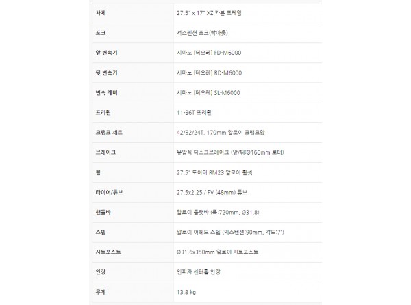 *시마노 데오레 3점(앞/뒤변속기,변속레바), 시마노 유압브레이크 장착, 리모트콘트롤 포크 장착
