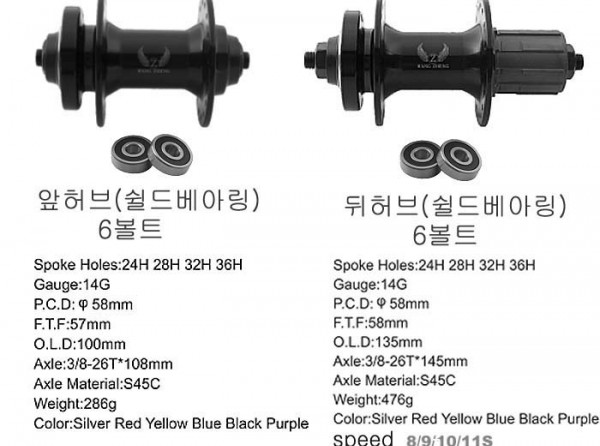 *중국산 부품으로 국내에서 조립한 튼튼한 휠셋이며 쉴드베아링이 장착된 허브를 채택하였음