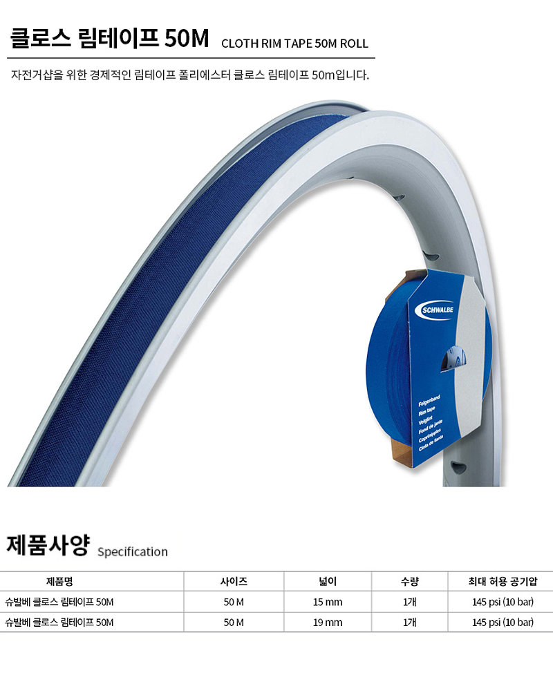 림테이프(슈발베 크로스, 폴리에스터-면, 50m*19mm/15mm) 림테이프(슈발베 크로스, 폴리에스터-면, 50m*19mm/15mm)