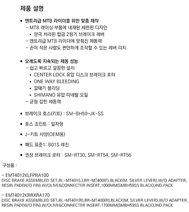 유압브레이크세트(시마노 아세라, BD-MT4012, 흑색, 앞1000/뒤1700) 유압브레이크세트(시마노 아세라, BD-MT4012, 흑색, 앞1000/뒤1700)